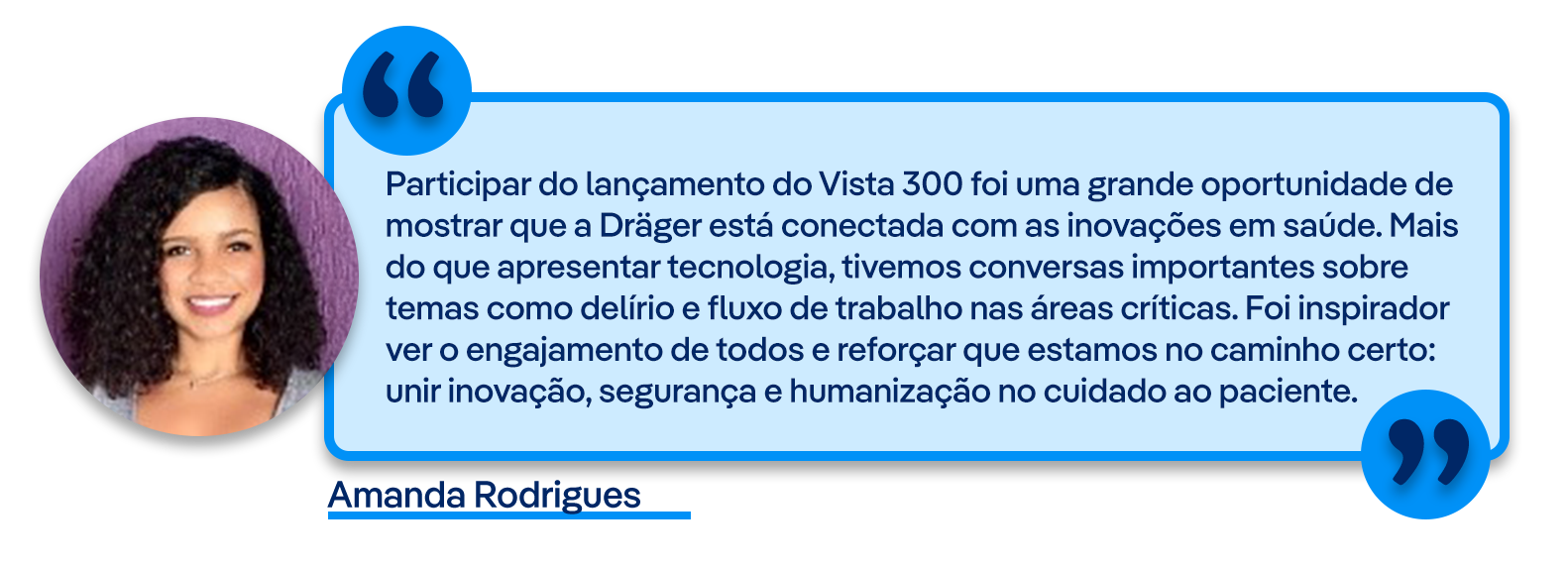 No dia 29 de março, lançamos oficialmente o novo Dräger Vista 300 com um evento especial: o V.I.P Brunch. Os especialistas Dr. José Otávio e a Enf. Dra. Larissa Oliveira, além dos nossos colegas Juan Ignácio, Global Business Manager da Dräger Madri, e Amanda Rodrigues, Coordenadora de produtos para a linha de monitorização de pacientes, conduziram uma manhã repleta de conteúdos e conversas sobre inovação, cuidado e tecnologia.